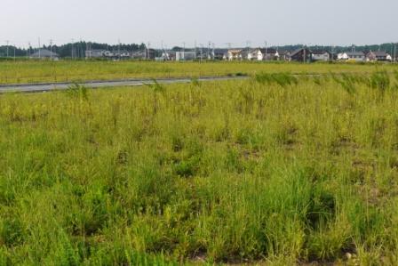 水戸市と城里町にまたがる丘陵地に造成された水戸ニュータウウン。広大なさら地には夏草が生い茂り、吹き渡る熱風に揺らいでいます。開発対象面積は135ヘクタール。1700戸(うち集合住宅500戸)を張りつける計画でした。同公社が分譲中の住宅団地としては県内最大規模です。