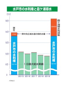 市が茨城県中央広域水道の開発に関する協定を周辺自治体とともに県と結んだのは40年前の1984年。人口増予測のもと過大な水源開発が行われ、市は1998年より県水の購入を開始。以来、県に支払った受水費は約48億円にのぼります。
