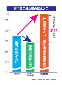 ▼田中まさき議員が県からの受水のムダづかいを追及した議会で使用したパネル▼